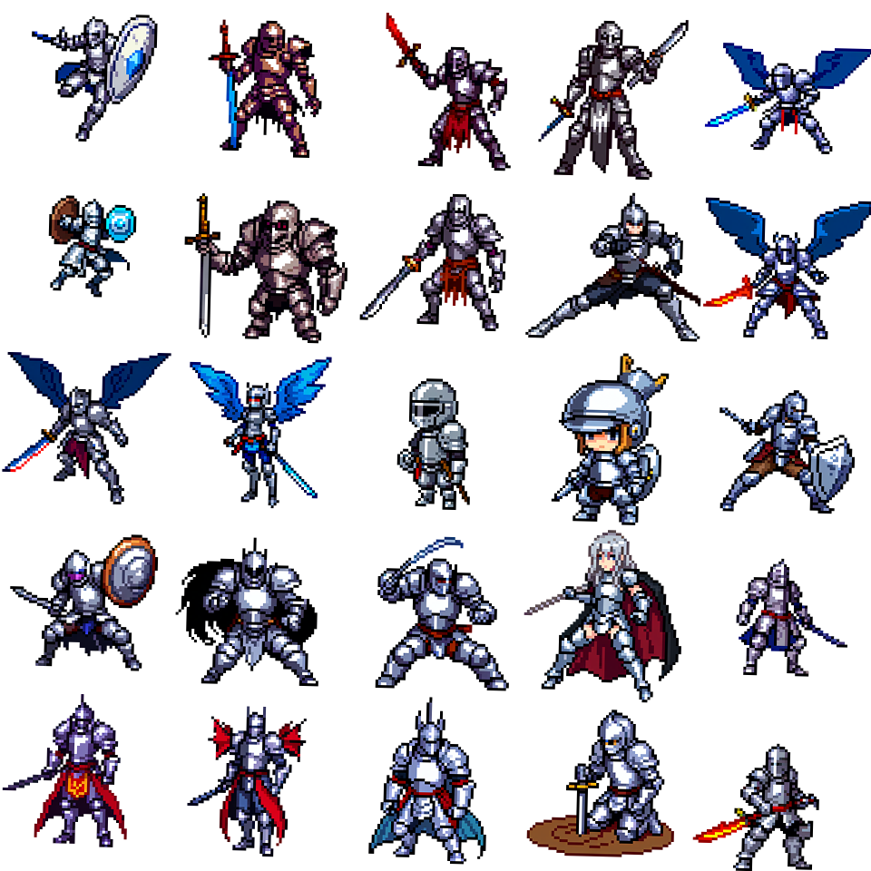 | Tags | Characters, Dungeon Crawler, knight, Monsters, Pixel Art, Superhero |